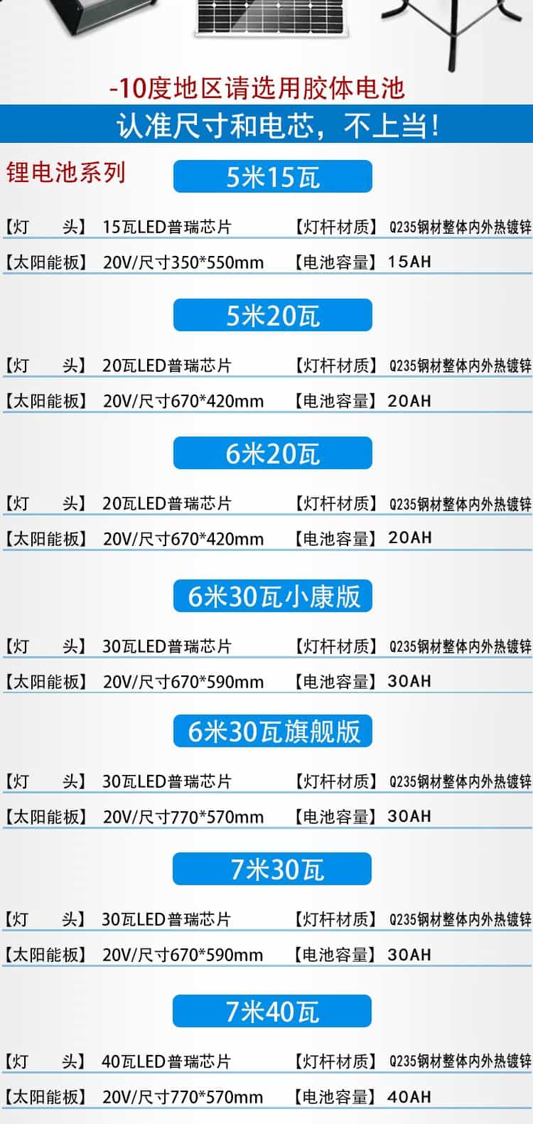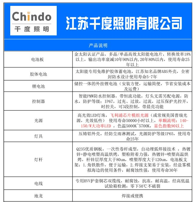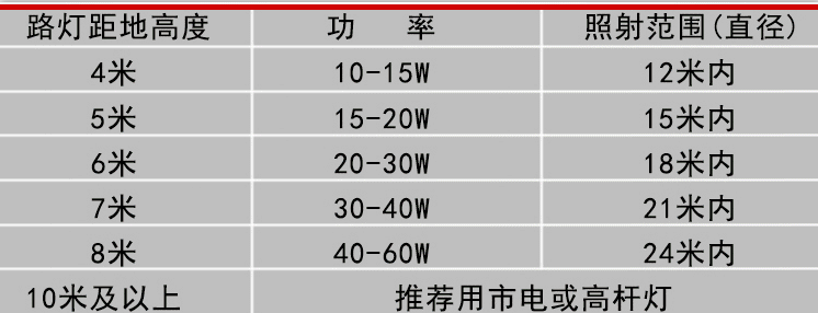 常規(guī)鋰電池太陽(yáng)能路燈價(jià)格表