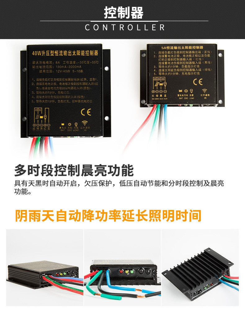 太陽能燈具:金豆燈具,30W光源,美國普瑞LED芯片。